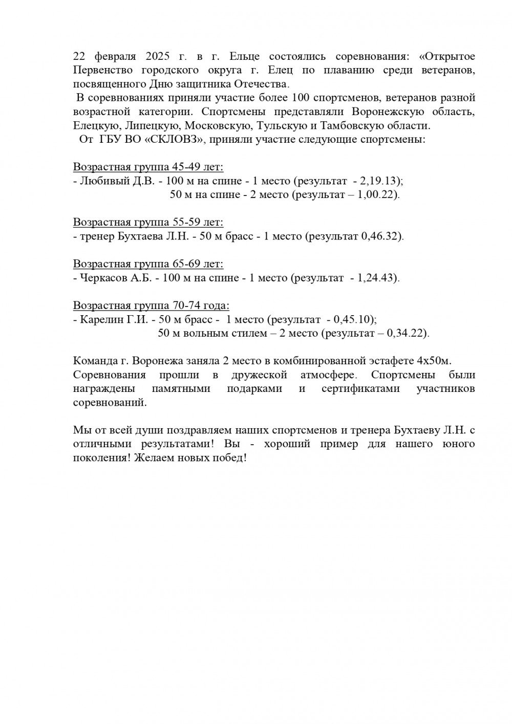 Открытое Первенство городского округа г. Елец по плаванию среди ветеранов